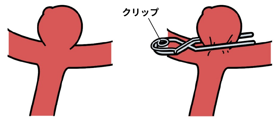 脳動脈瘤の根元をクリップで挟み血流をとめる方法で、頭蓋骨を切開して開頭し、手術を行う
