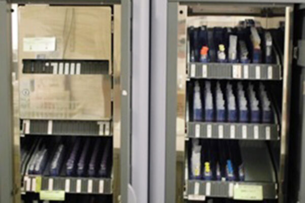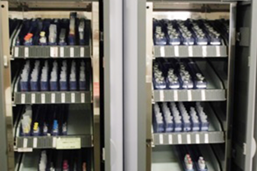病棟・外来(一部除く)では注射薬をバーコード認証して準備します。病室では患者さんのリストバンドと注射のバーコード、実施者のバーコードの 3 点認証を実施して投与します。 - 初療や ICU ではリテラによる薬剤管理を行っています。薬を取り出す時、音声で薬剤名を教えますので看護師が 1 人でもダブルチェックできるシステムです。