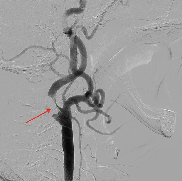 内頚動脈狭窄症は、高血圧・糖尿病・脂質異常症・加齢などの影響により、内頚動脈に粥状硬化(プラーク)が生じ、血管の内腔が狭くなる、あるいは閉塞してしまう病気です。