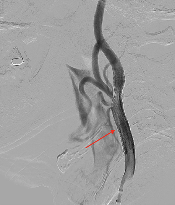 現在は、頚動脈内膜剥離術(CEA)が難しい症例(高齢者、全身合併症がある方、再狭窄例など)が主な適応となります。