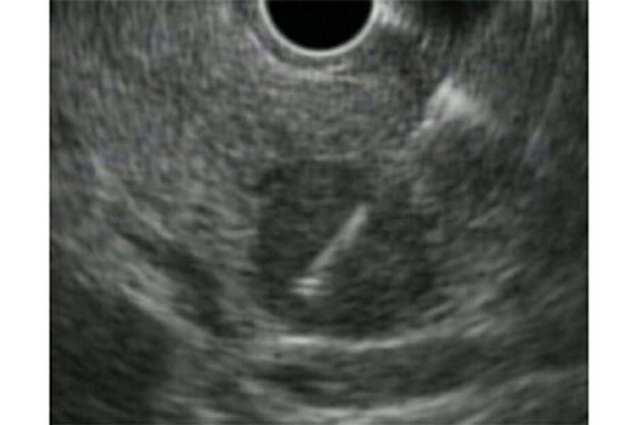 EUS で“腫瘤”(かたまり)として描出される場合は、EUS下に腫瘤を穿刺して細胞や組織を採取し、病理診断を行います(EUS-TA)。 当科では、病理部と連携し、内視鏡検査室での迅速細胞診で検体が十分に採取できているかどうかを確認しております。