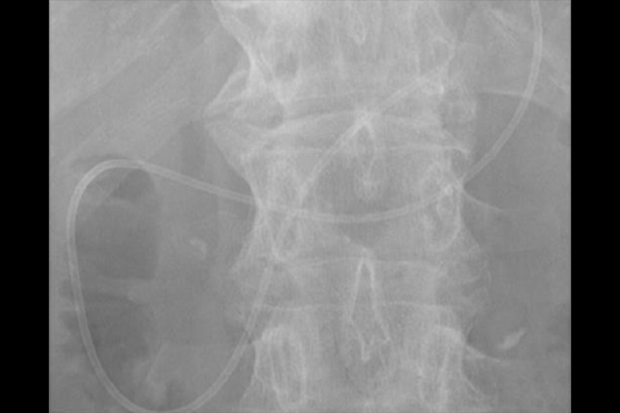 前述のEUS-FNAの方法を用いることで、以前では外科的な開腹(または腹腔鏡)で治療を行うことが多かった、腹腔内にたまった液体や膿に対しても、体への負担が比較的少なく治療を行うことが可能となってきております(超音波内視鏡ガイド下ドレナージ)。