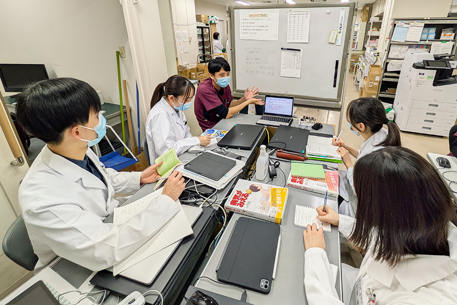 大学で学んだ知識・技能・態度を基に、臨床現場での実践的な対応能力を身につける参加・体験型の実習を行っています。大学-病院-保険薬局の連携を図りながら一貫した実習により、社会的ニーズに貢献できる薬剤師の育成に取り組んでいます。