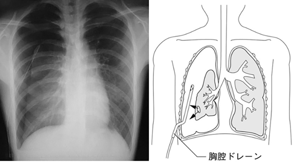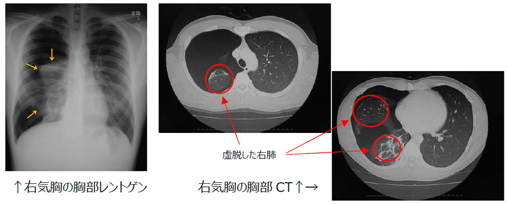 気胸とは、本来空気の存在しない胸腔内に何らかの理由で空気が漏洩・貯留し、肺が虚脱した状態のことを言います。