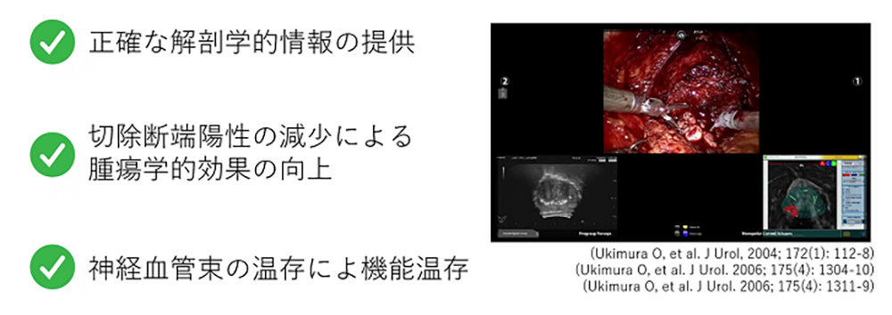 この、リアルタイム超音波ガイダンス法は、術後尿失禁の早期改善や勃起機能温存の向上による、術前から術後への生活の質(QOL)の維持への貢献が期待できます。