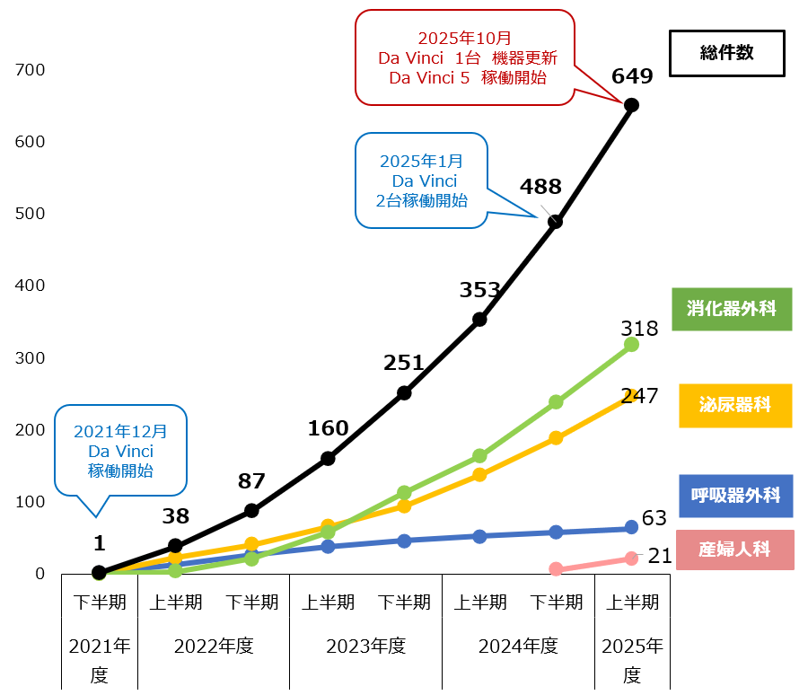 ダビンチ手術累計症例数(2025年10月現在)