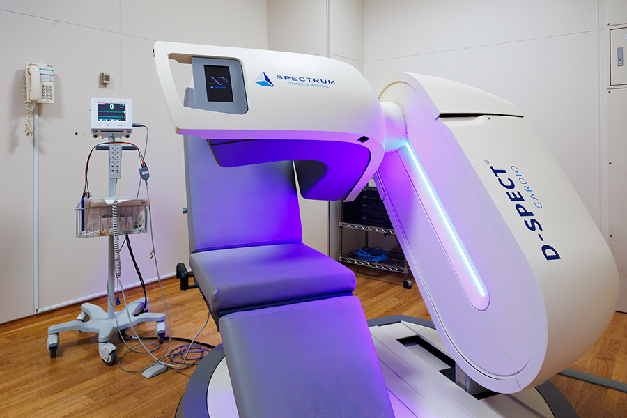 当院で稼働しているD-SPECT装置は検出器に半導体を使った心臓専用ガンマカメラで、京都府内では当院が初めての導入です。(写真3)
