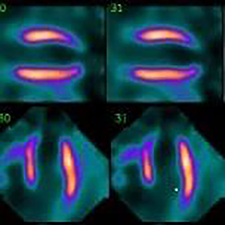CT検査やMRI検査などは精度が良い形態的な情報を得ることが出来るのに対し、アイソトープ検査では血流や代謝などの機能的な変化を画像情報として得ることが出来ます。SPECT(スペクト)検査により目的とした臓器への放射性物質の分布を3次元的に撮像し断層画像として出力できます。当院では、骨シンチ、心筋シンチ、脳血流シンチなどが可能です。