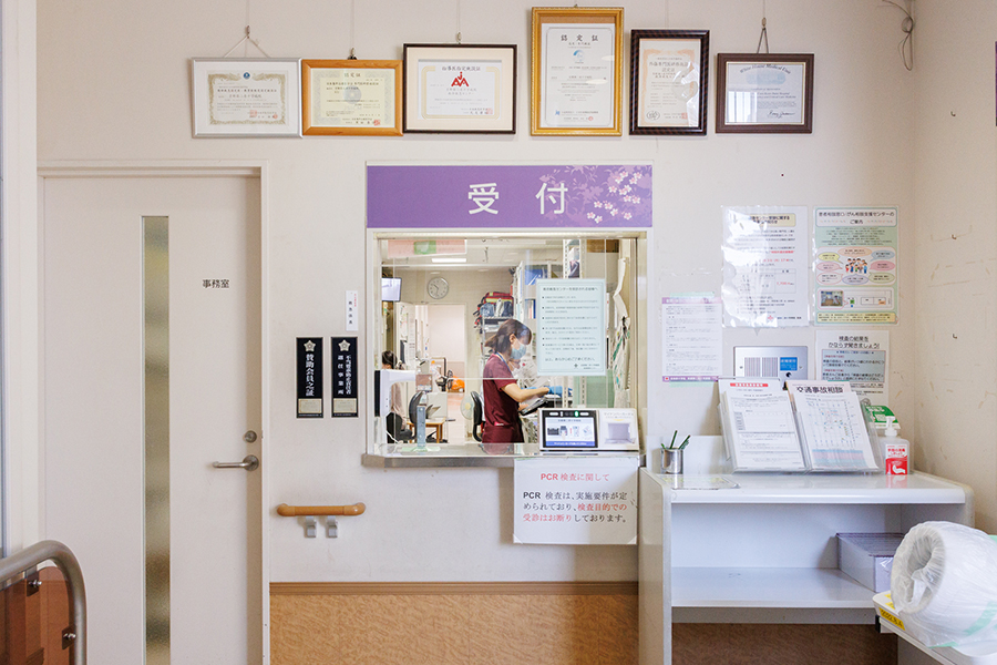 - 出入り口横に受付窓口がありますので、「健康保険証」と「診察券」を提示してください。受付手続きを行います。